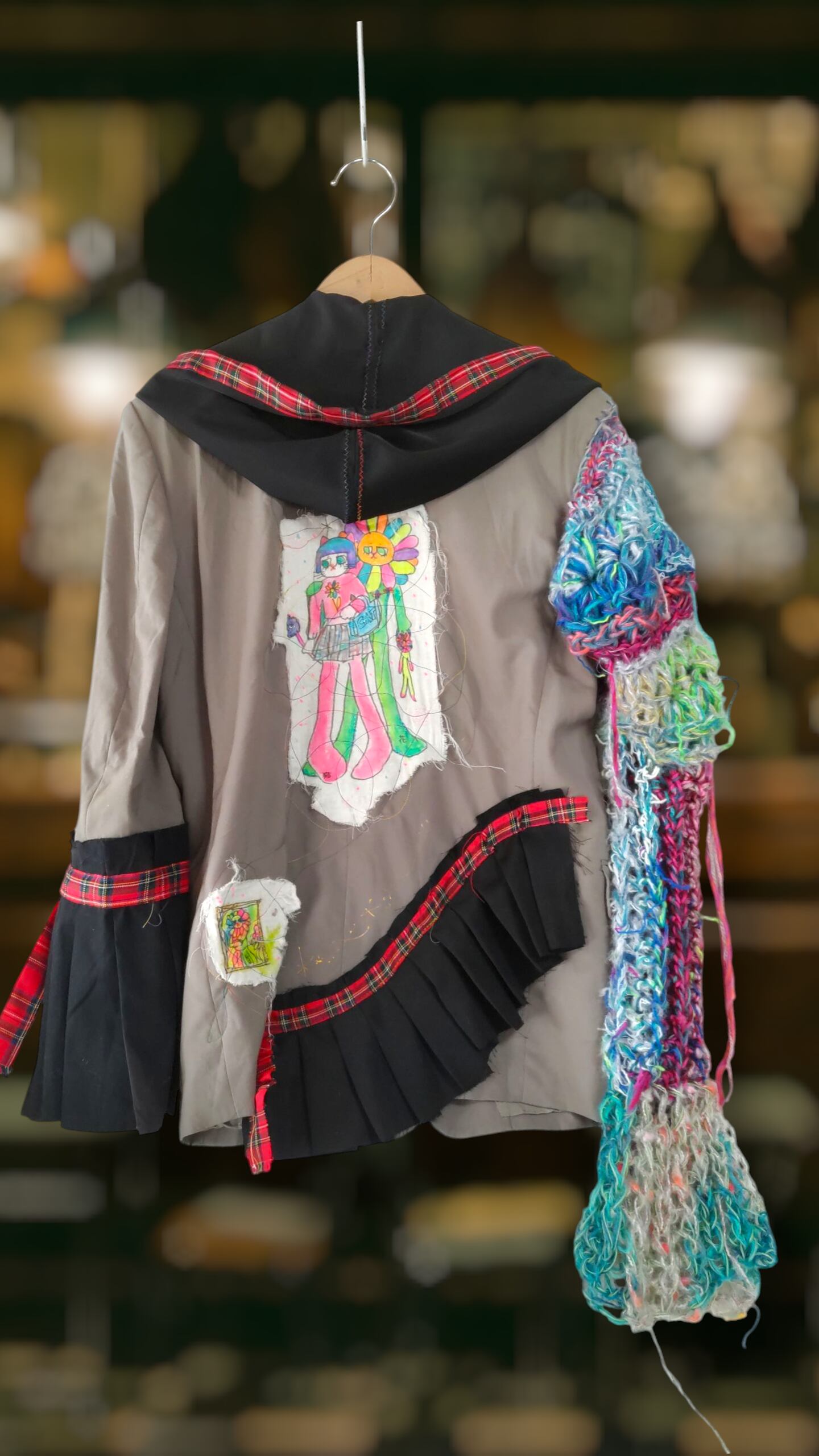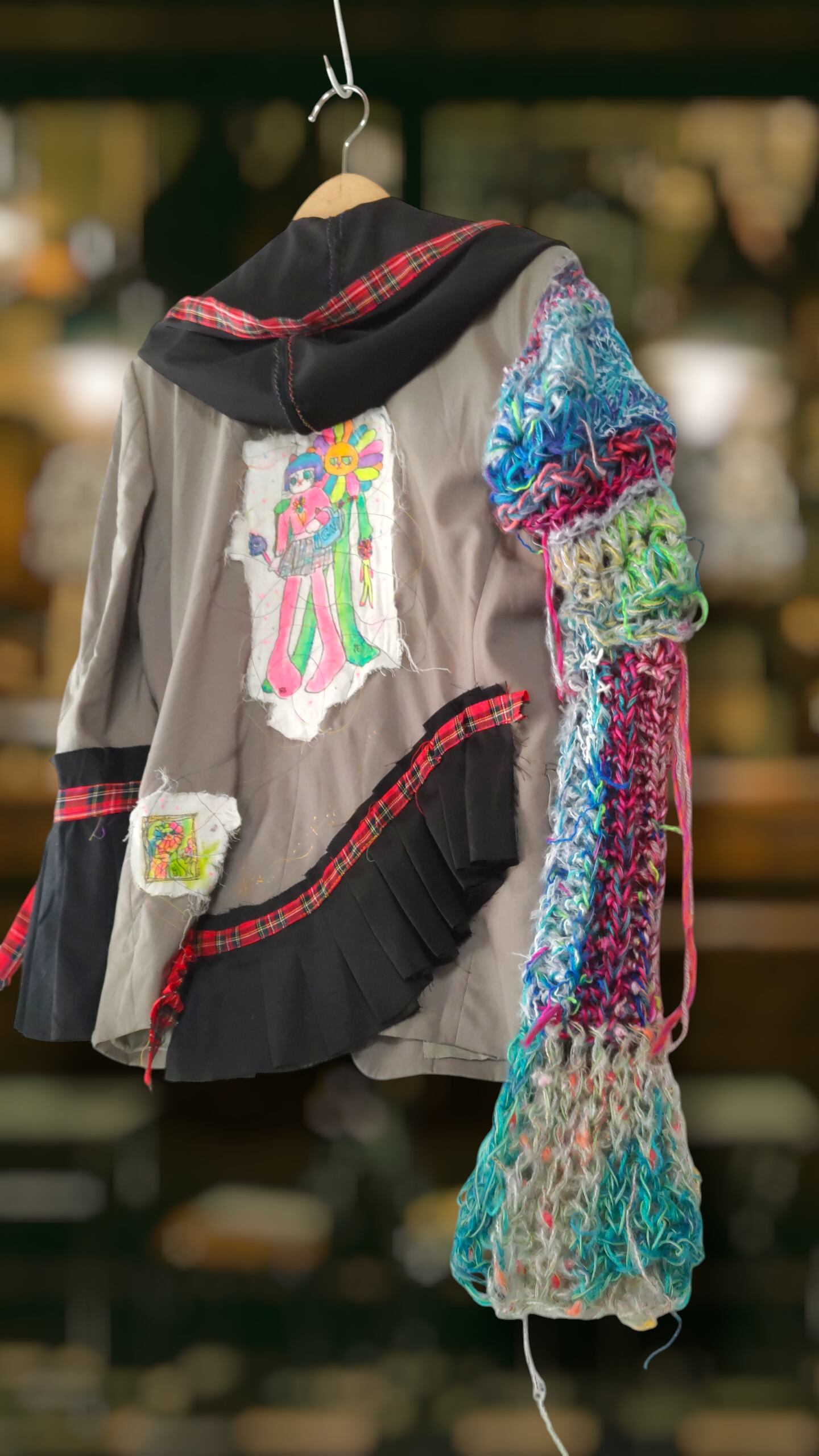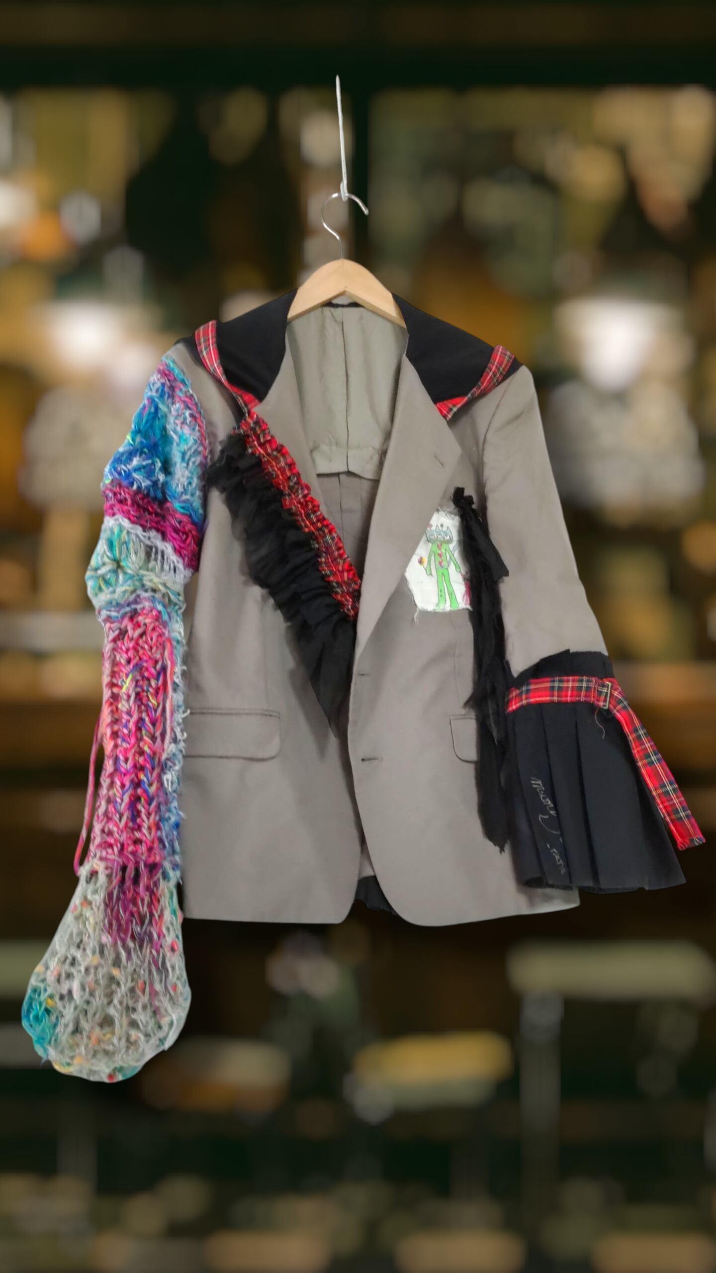 ☆mumbo jumboのリメイク᙭カラフルニット【 パワーショルダーなジャケット】