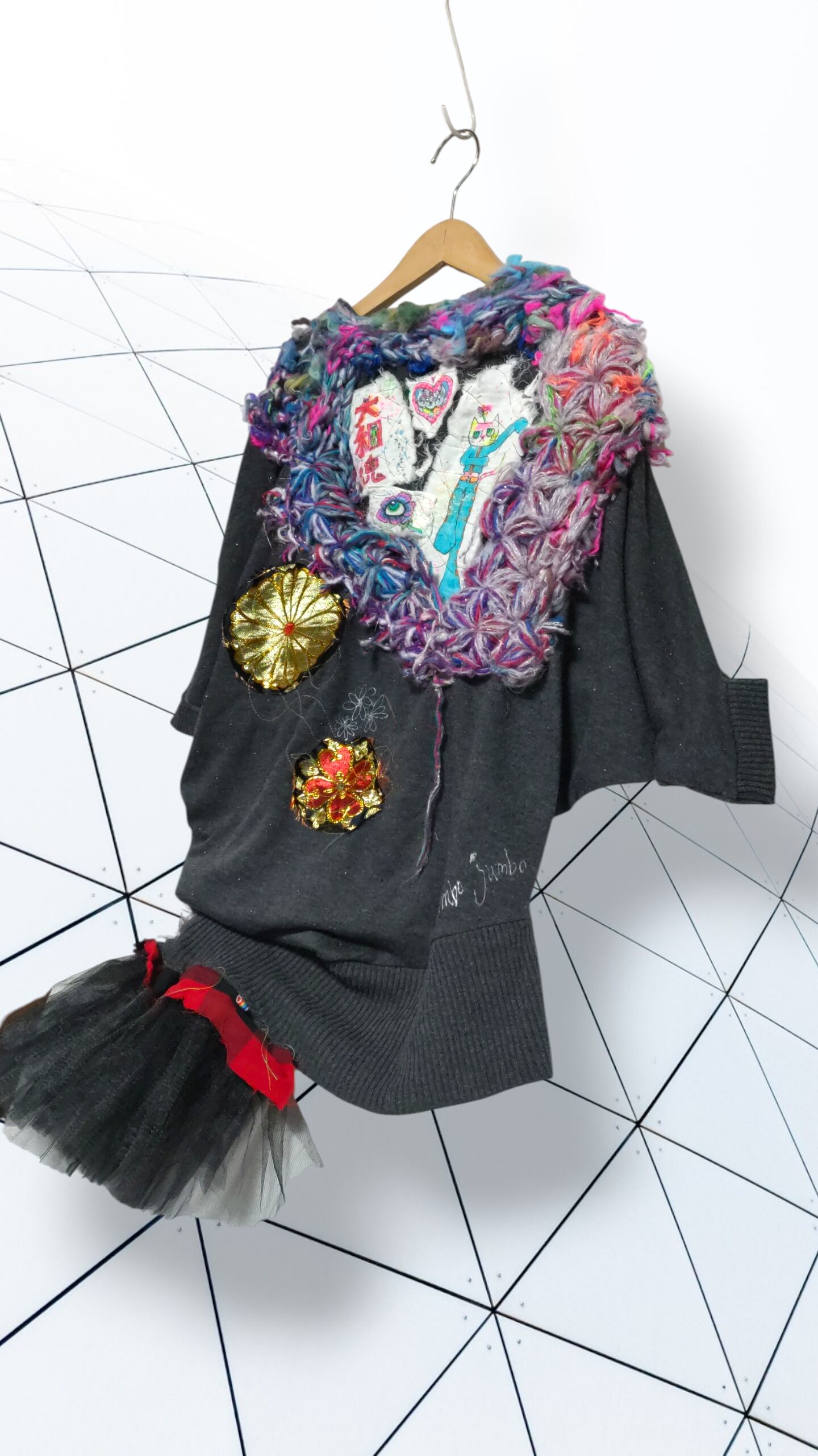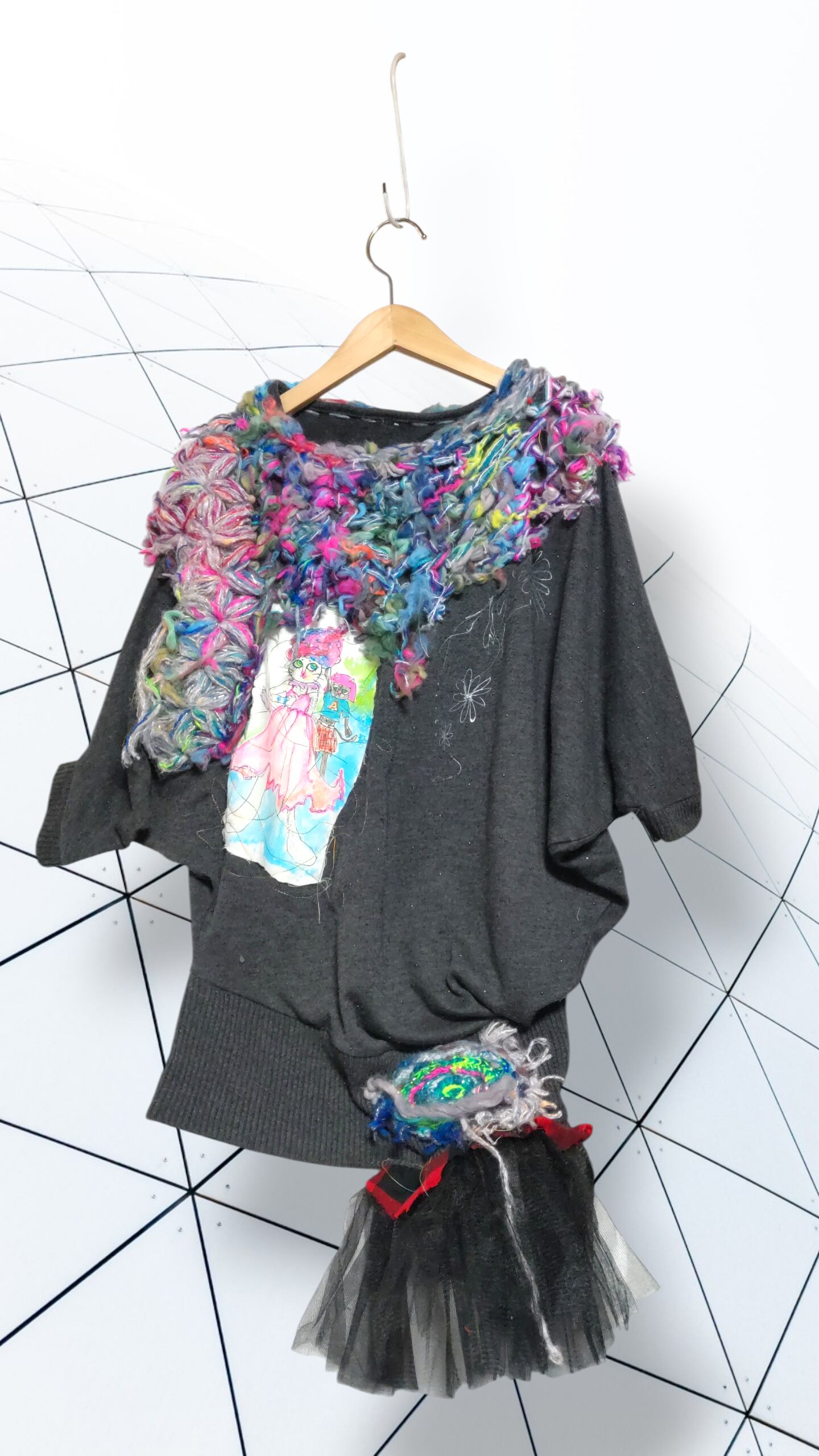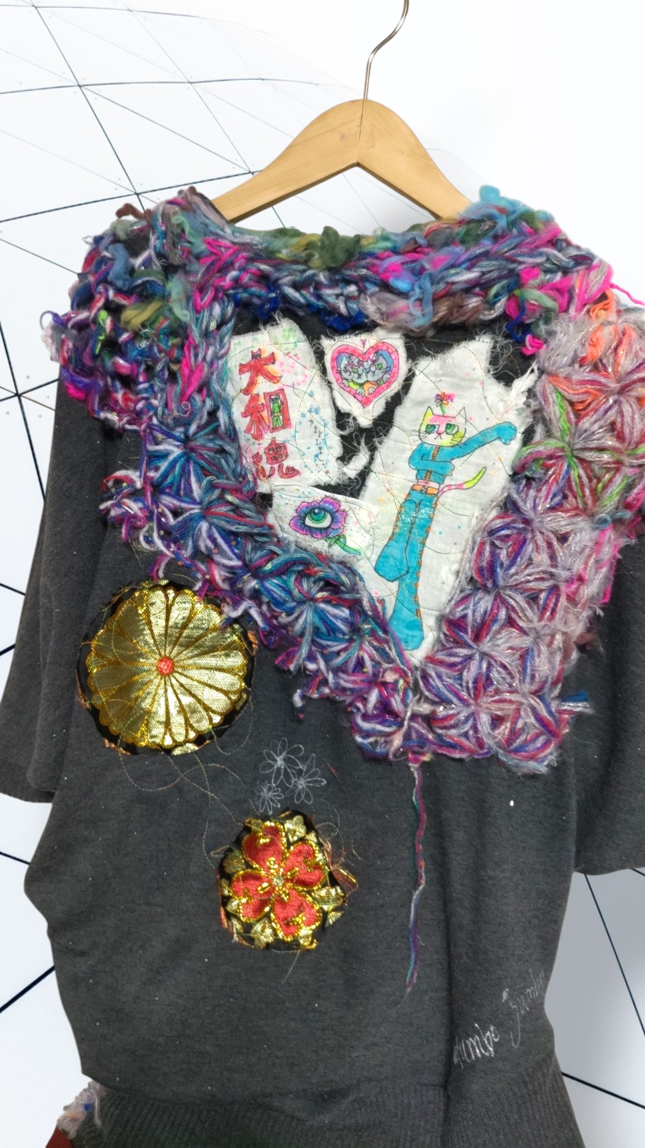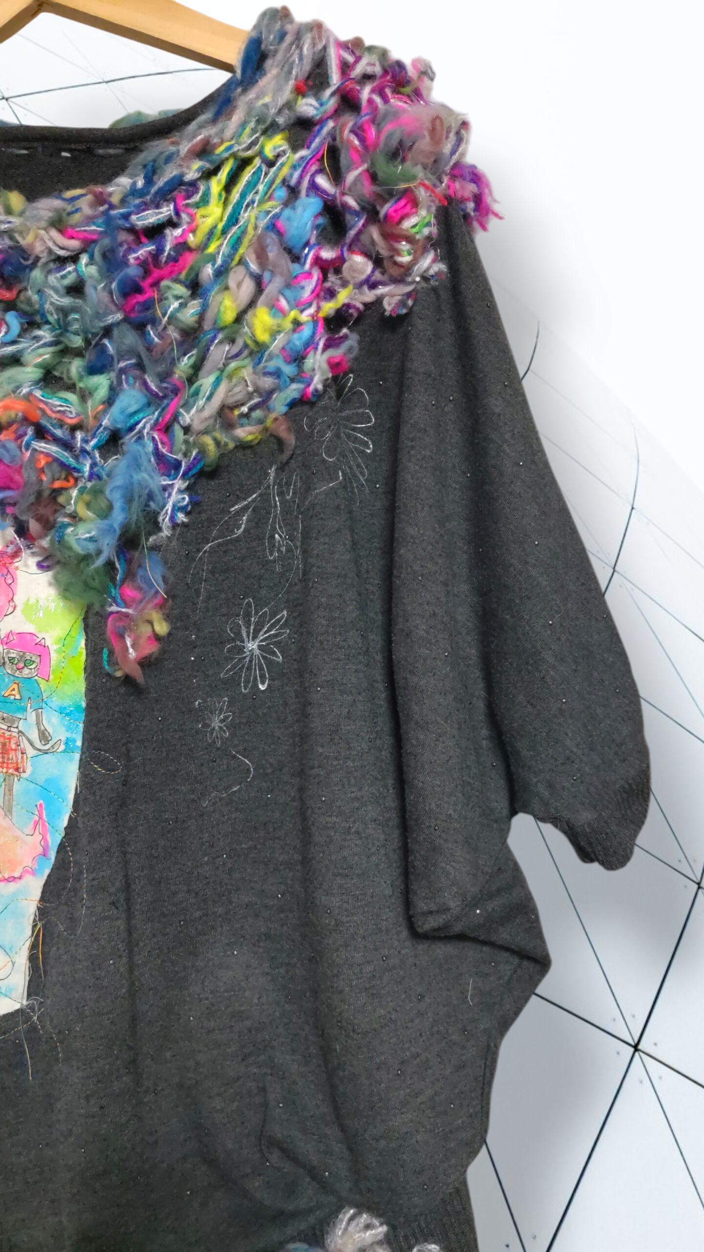 ☆mumbo jumboのリメイク᙭カラフルニット᙭イラスト【 変形スエット】