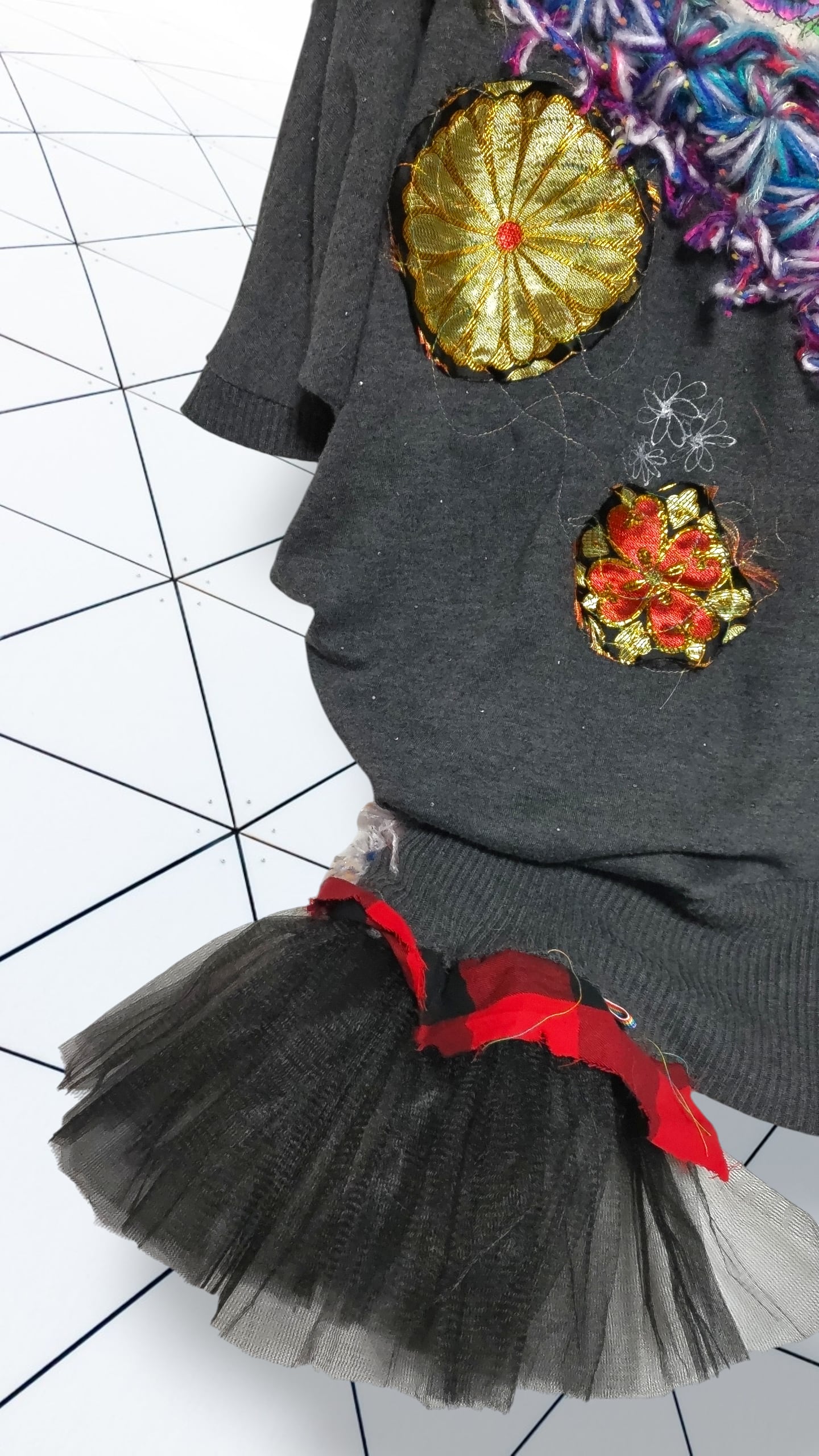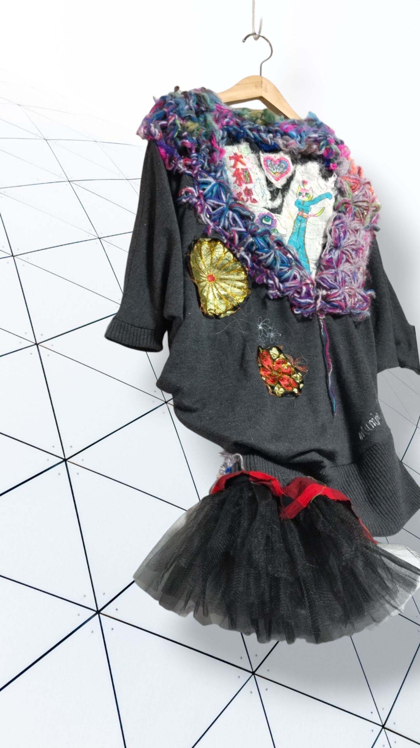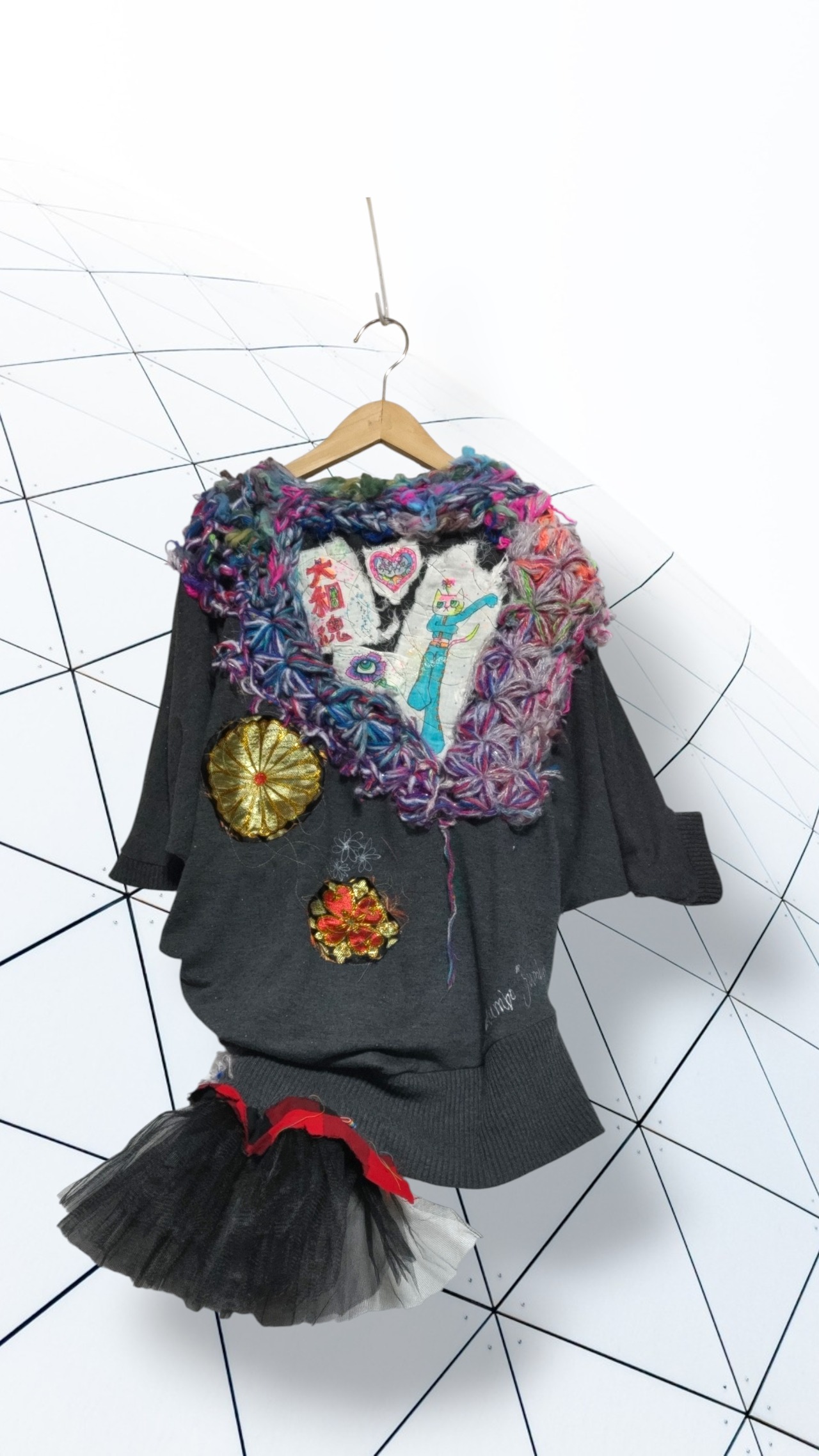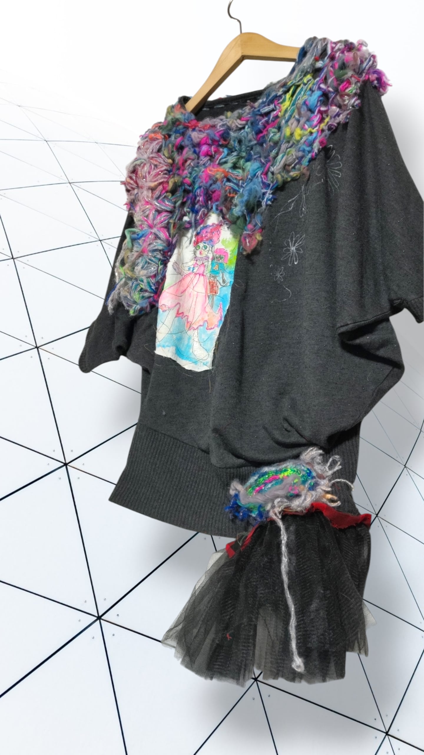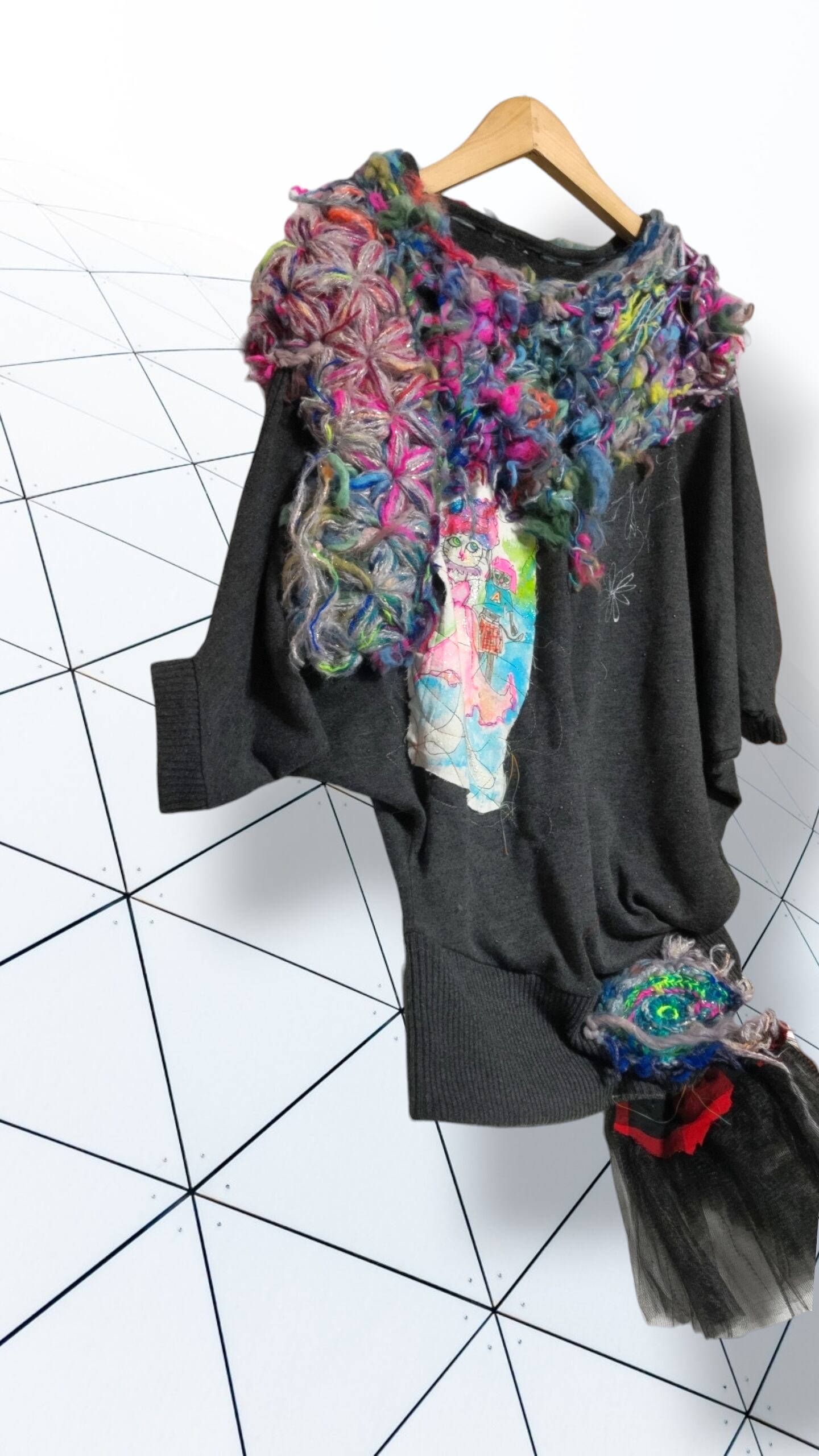 ☆mumbo jumboのリメイク᙭カラフルニット᙭イラスト【 変形スエット】