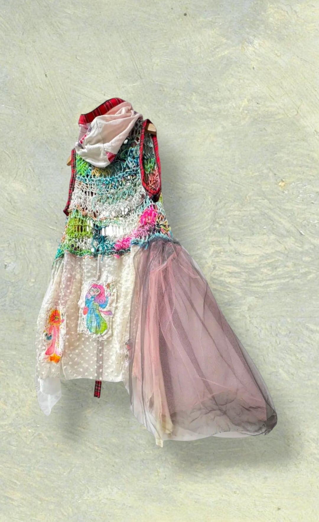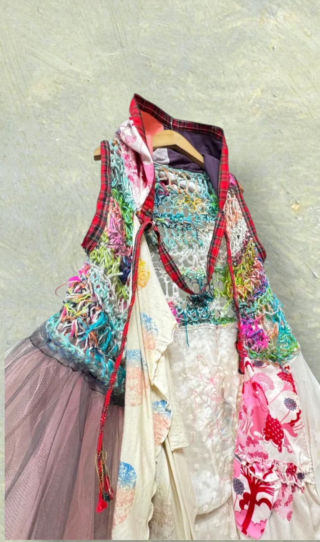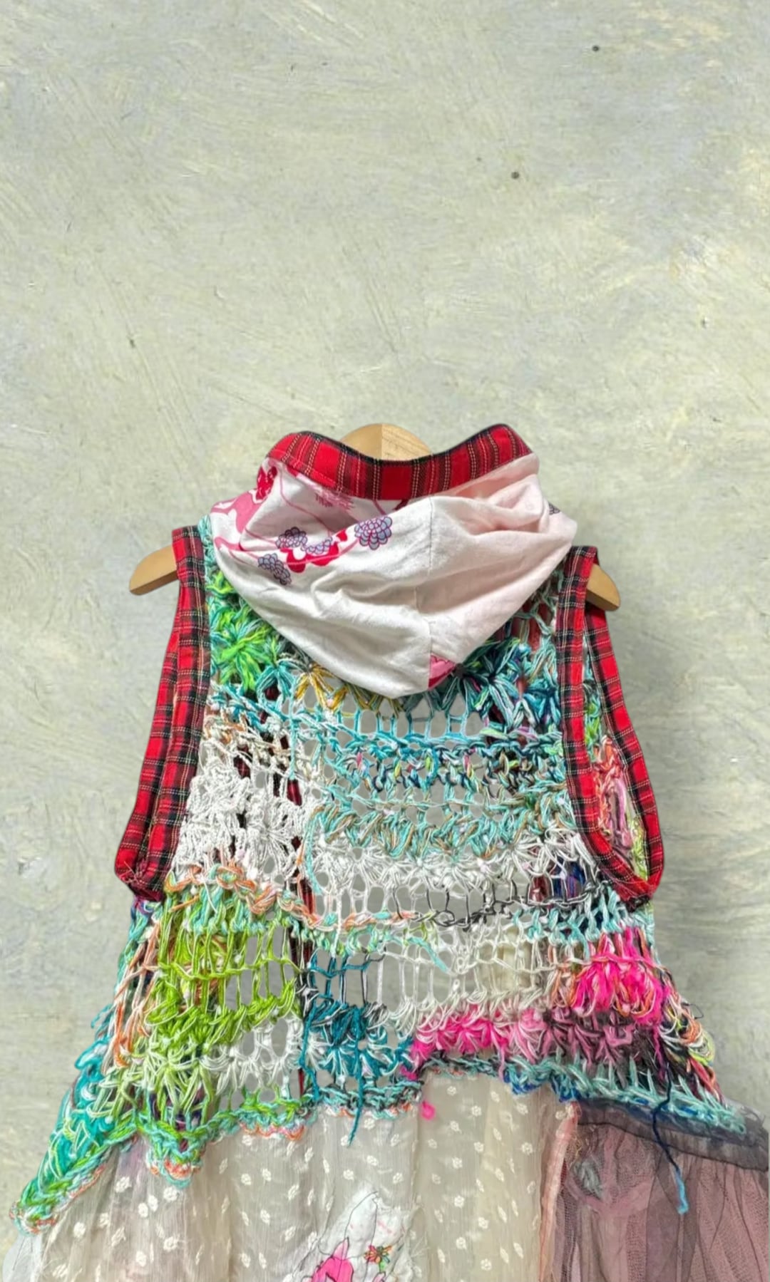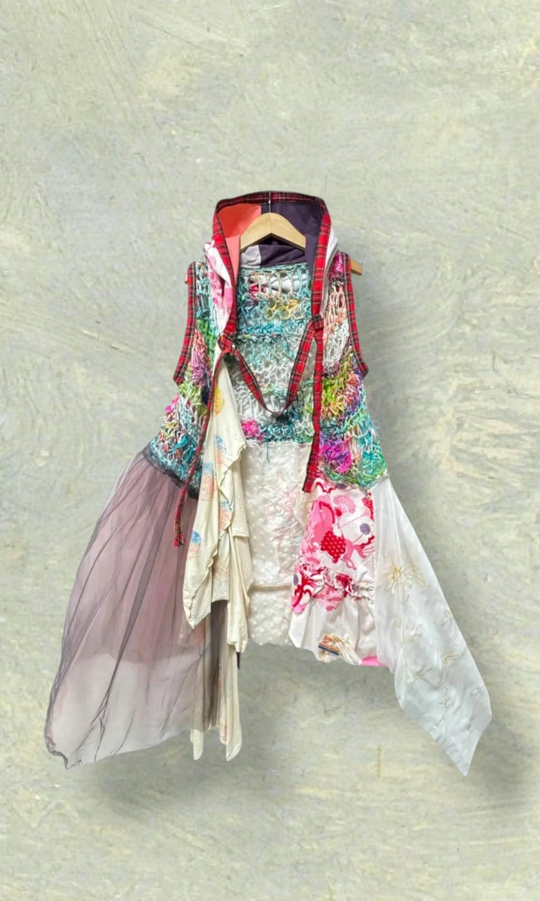 ☆mumbo jumboのリメイク᙭カラフルニット【 フーディなジレ/WHITE系 】