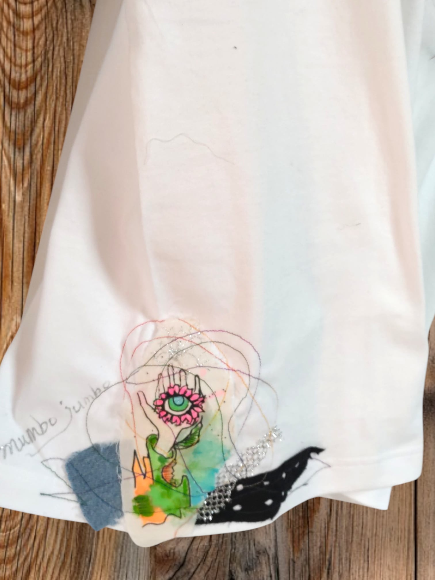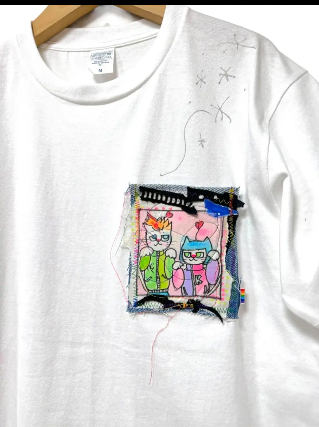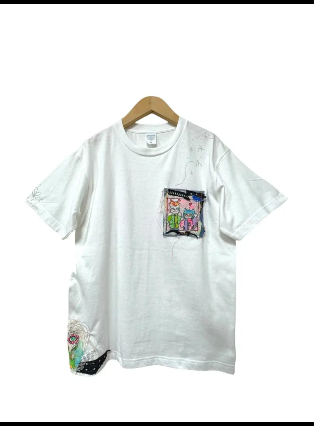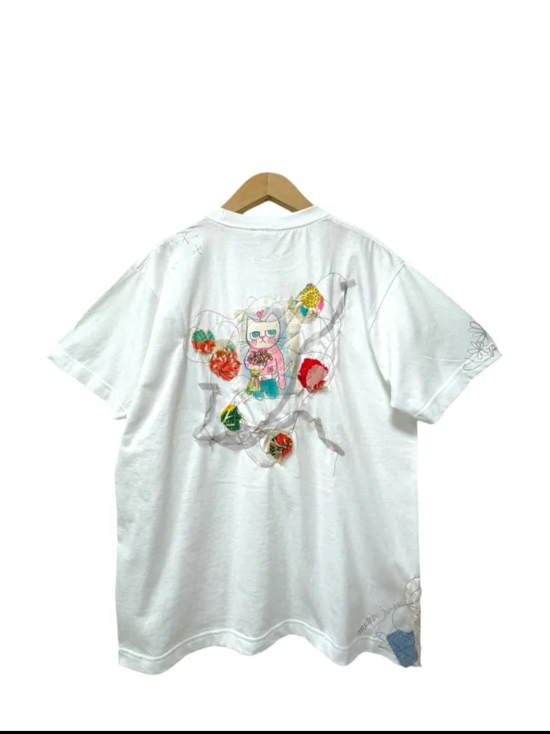 ☆mumbo jumboのリメイクTシャツx手書きイラスト【ねこちゃんはでべそ 】